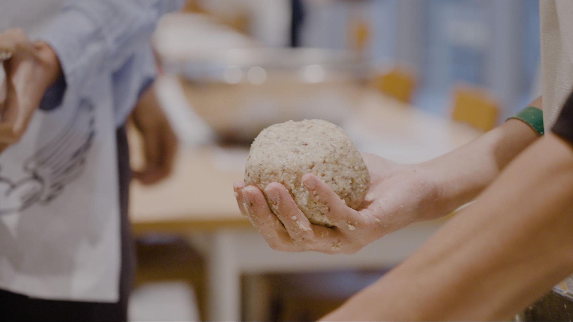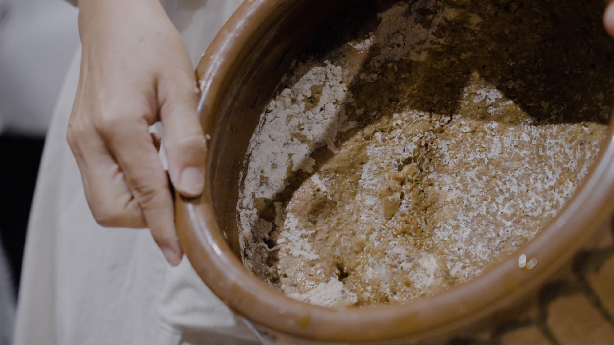 麹と蒸した豆、塩を混ぜて味噌玉をつくります。