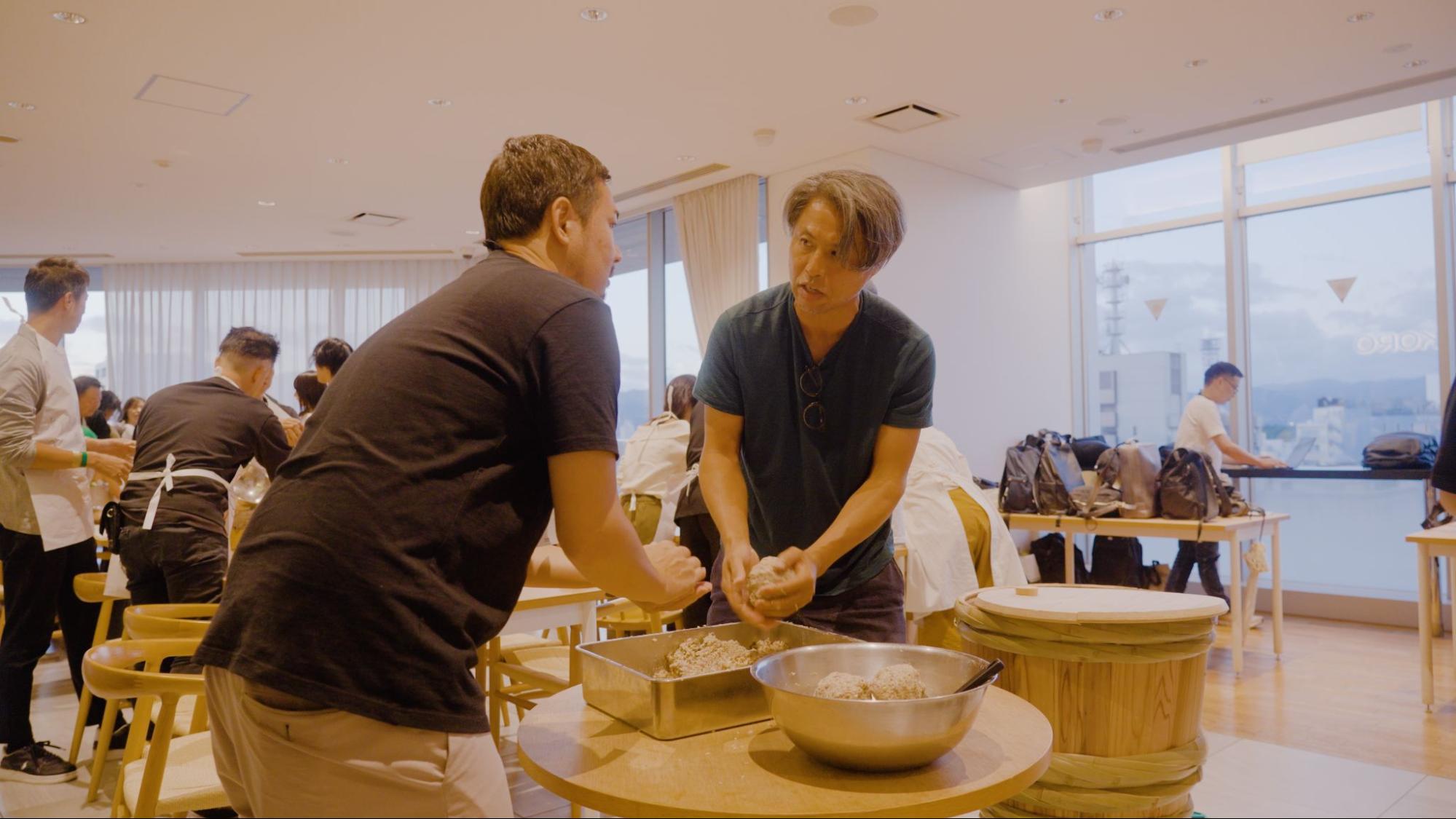 味噌を一緒につくることで自然な会話とつながりが生まれます。(※今回木樽は使用しません)