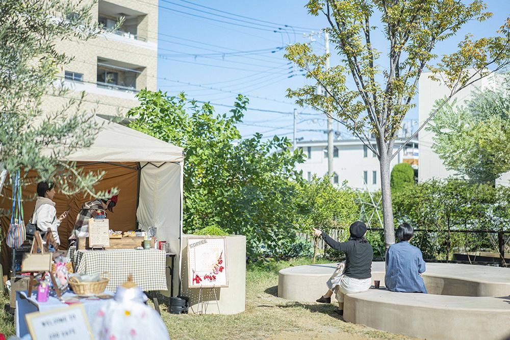 5日(日)は広場で小さなマルシェ。お散歩がてら、おしゃべりやお買いものをどうぞ。芦屋のパン屋さんや、CITY FARM CLUBを担当する農家さん、広場を担当する庭師さん、老舗の和菓子屋さん、そして旧宮塚町住宅を運営する緑青舎のカフェ&ショップがお待ちしています。